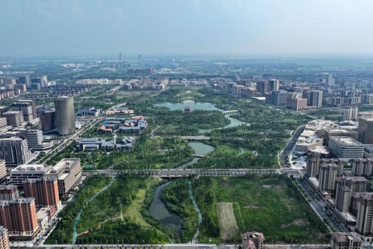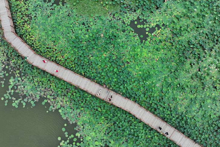 Foto dari udara yang mana diabadikan menggunakan drone pada 9 Juli 2024 ini menunjukkan orang-orang mengunjungi taman teratai pada Danau Baiyangdian di tempat Kawasan Baru Xiong'an, Provinsi Hebei, China utara. (Xinhua/Mu Yu)Foto dari udara yang diabadikan menggunakan drone pada 9 Januari 2025 ini menunjukkan lokasi proses pembuatan dalam zona start-up pada Kawasan Baru Xiong'an, Provinsi Hebei, China utara. (Xinhua/Mu Yu)Foto dari udara yang tersebut diabadikan menggunakan drone pada 31 Juli 2024 ini menunjukkan Taman Jinhu pada Kawasan Baru Xiong'an, Provinsi Hebei, China utara. (Xinhua/Mu Yu)